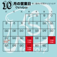 大変お待たせ致しました。10月の営業日が決定致しました。詳しくはこちらをご確認下さい。